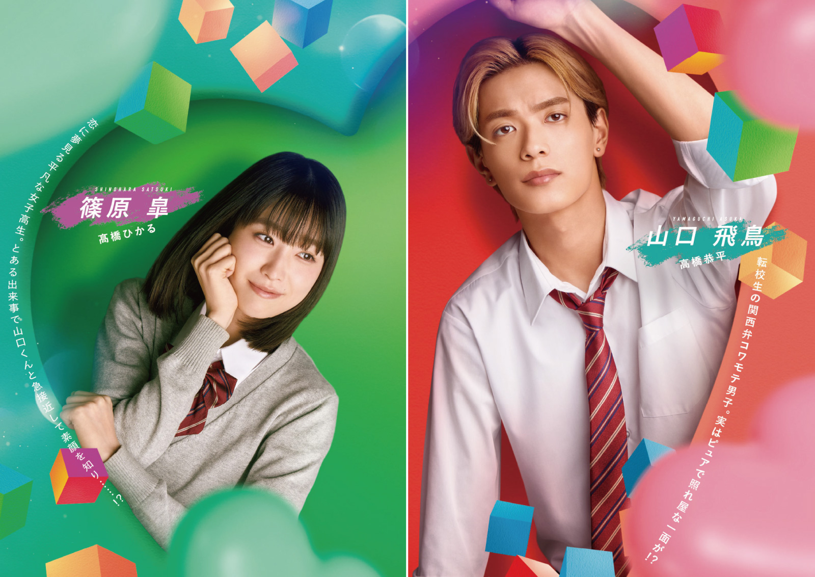 石崎はコミカルな役どころで、物語に大きな影響を与えるキャラクターです。今回演じさせていただいて、お芝居の幅が広がり、とても楽しい挑戦になりました。 高橋恭平さん演じる山口くんは、コワモテな見た目とは裏腹にピュアで優しいギャップ満載のキャラクターです。皐や石崎、周りとの関わりの中でその魅力が引き出されていきますが、特に後半に石崎と対峙する場面では、山口くんの“モテ”要素が最大級に表現されているので、ぜひ注目していただきたいです! また、恭平さんやひかるさんは大先輩で最初は緊張もありましたが、同じ関西出身ということもあってとてもフレンドリーで親しみやすいお2人でした。現場は終始楽しく、素晴らしい時間を過ごさせていただきました。 登場人物同士の関係性や成長、キュンキュンやコミカルなシーン、いろんな魅力を楽しんでもらえると思うので、ぜひ楽しみにしていてください!