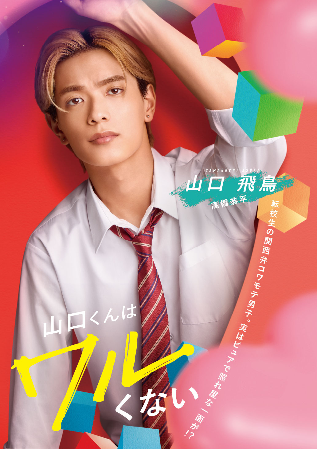今回このお話をいただいてから、原作を読ませていただいたのですが その時に関西弁の役だと知り、すごく面白そうだなと思いましたし 見た目が金髪のヤンキーで関西弁の少女漫画というところに惹かれました。 原作に合わせて、ピアスをつけていて、でも自分はピアスの穴が空いていないので、マグネットでくっつけるタイプを初めてつけたんですけど、最初の方はめちゃくちゃ痛いのを我慢してたんです笑笑 でも、最終的には慣れました! 今回の山口くんという役柄的に とにかくコワモテ、ギャップ、関西弁、ドスを効かせる感じを意識して演じたので、公開を楽しみに待っていていただきたいです!